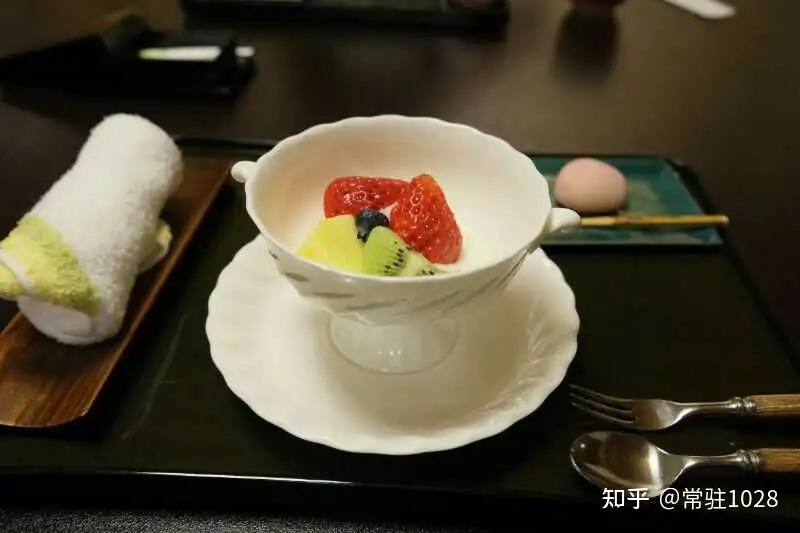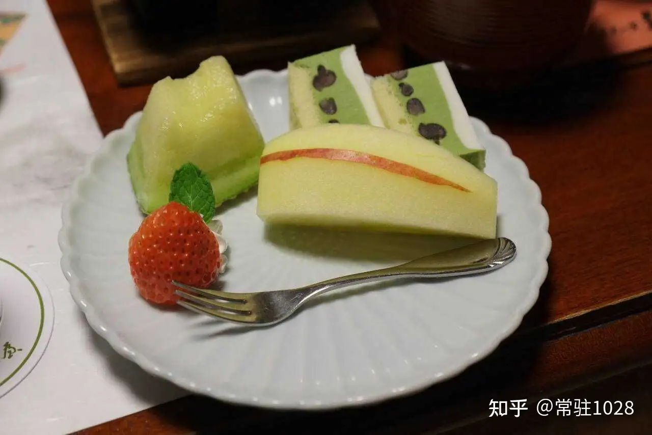 甜点水果。后面还有个粉色的大福是配抹茶吃的。