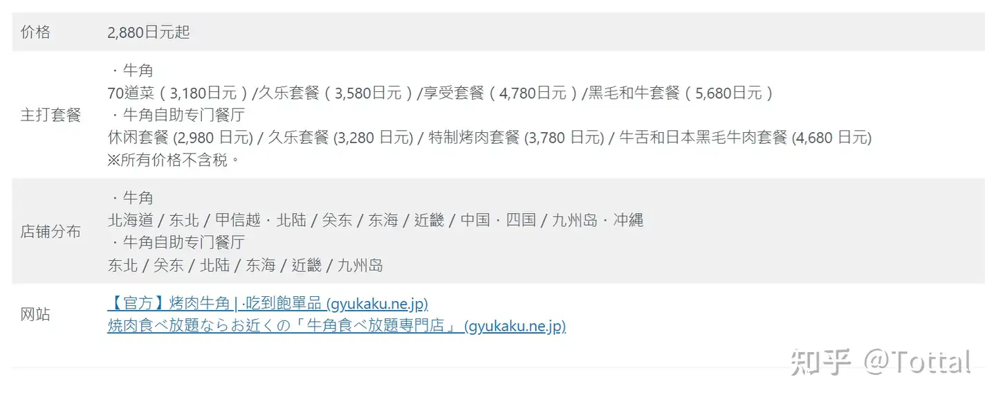 跑题了,继续说烧肉自助。比较有名的比如牛角,日本烤肉自助连锁品牌。以下都是截图内容。