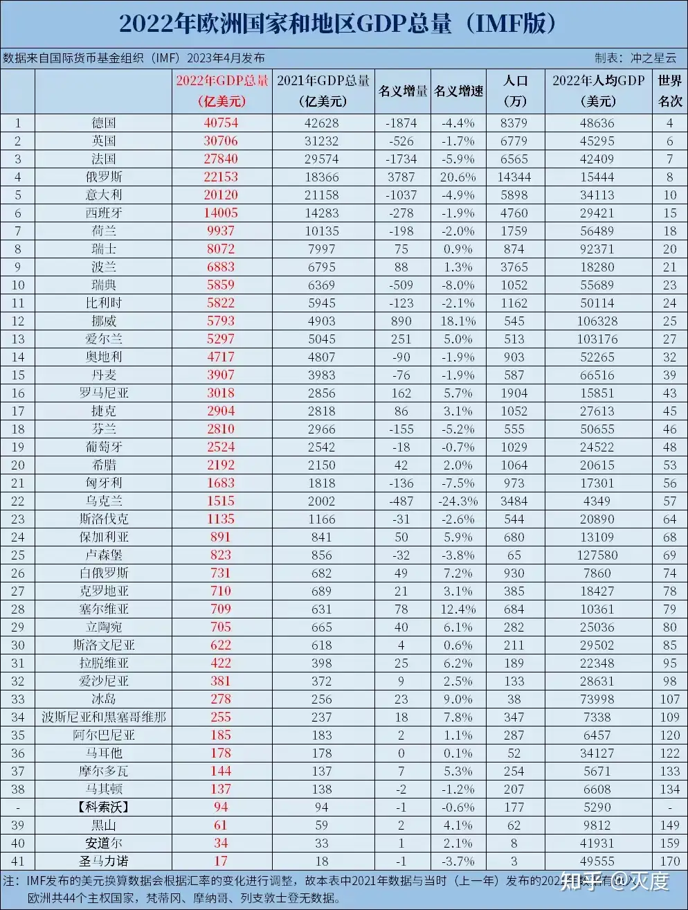 1,意大利人均GDP在欧洲里面排名一般,41个国家里排第18位;也就因为人口多,总GDP排到第五位。