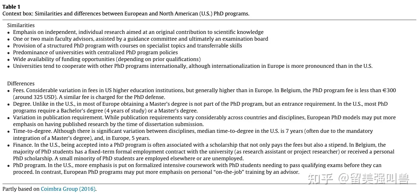 Table 1. Context box: Similarities and differences between European and North American (U.S.) PhD programs.Abstract
