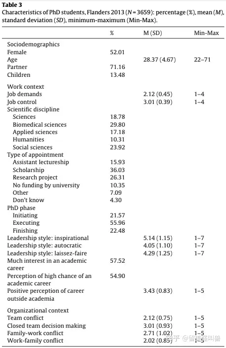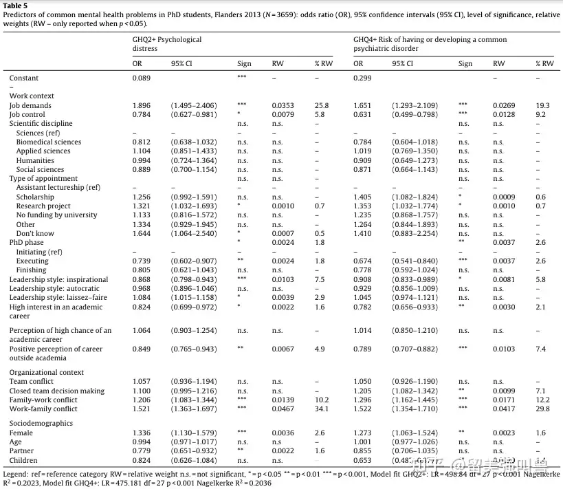 研究政策期刊:比利時3659名在讀PhD博士生心理壓力研究,51%有至少兩種心理問題癥狀;平均年齡28歲,71%有伴侶,13.5%有孩子;首要預測因素:工作衝擊家庭;其次:工作要求;第三:家庭影響工作