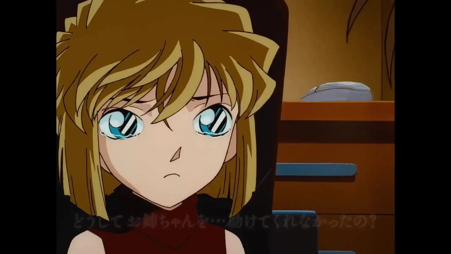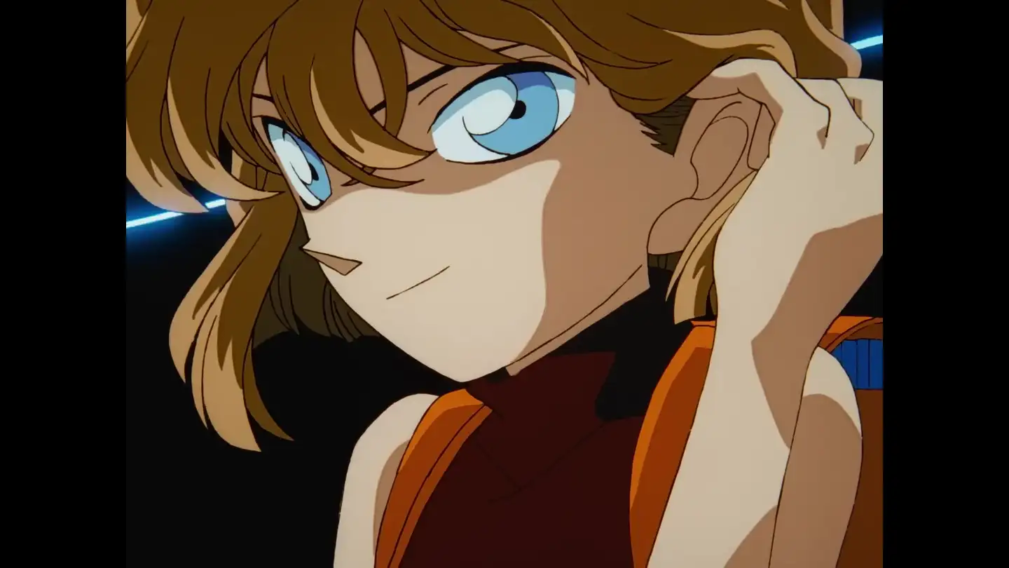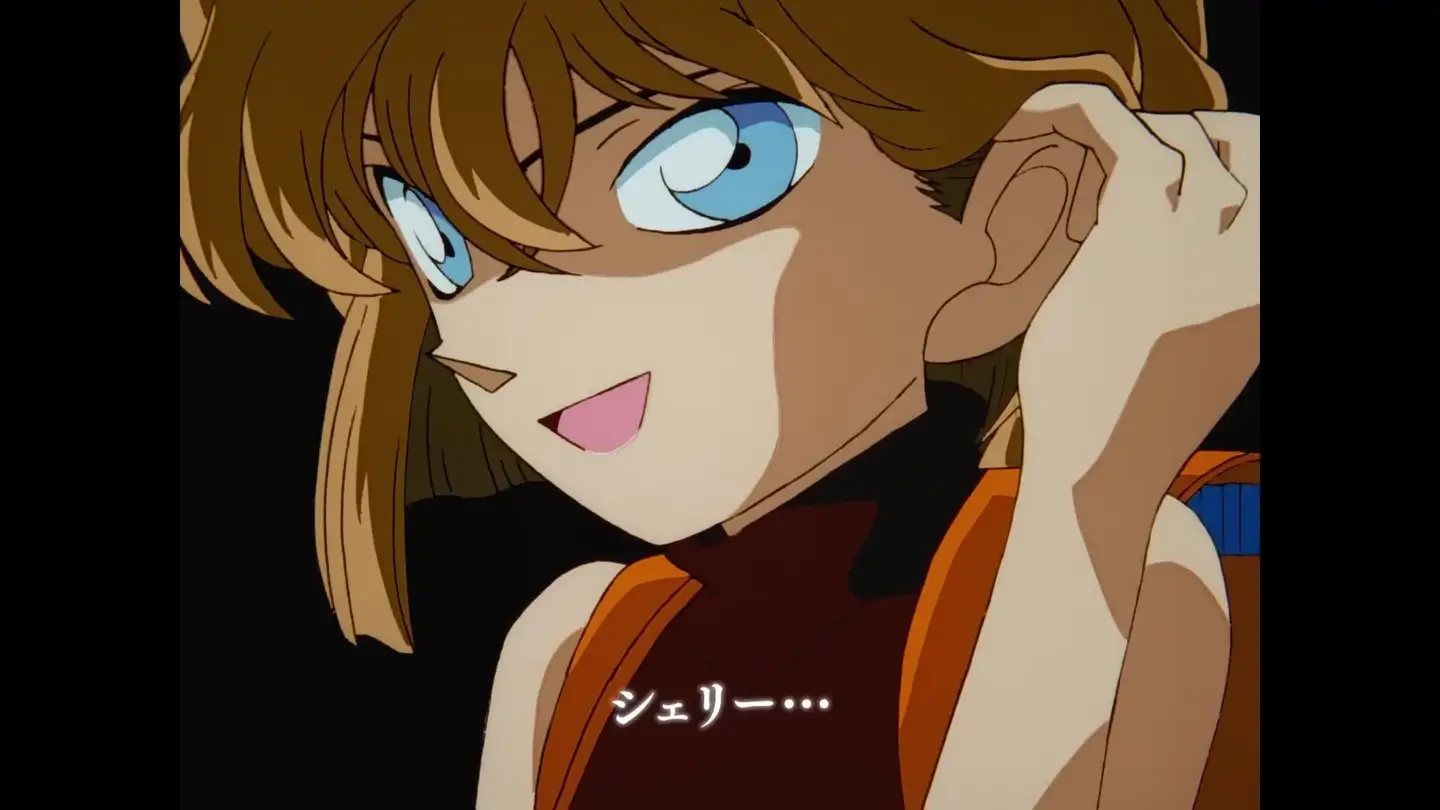其一,是和小柯互动的TV129《来自黑衣组织的女子 大学教授杀人事件》,总的感觉是画面偏亮,表情也有点人畜无害,没有那种能唬到柯南的“邪恶感”。