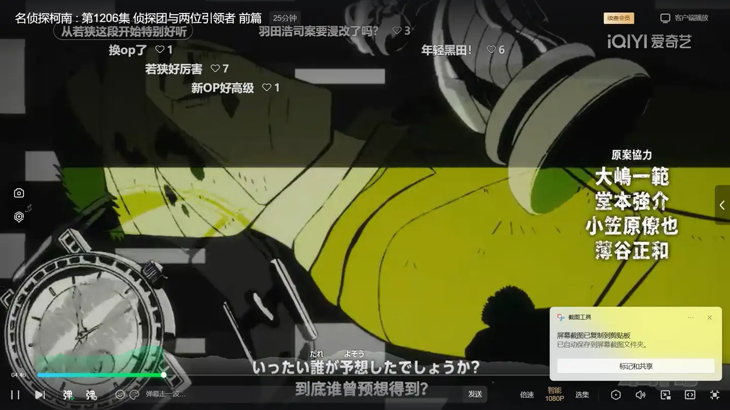 ED71OP55新OP和ED都是2025年1月4日启用的。当天有些事,次日才追更。一看OP,哟,主线相关!柯哀加朗姆三嫌,漫画质感,那自然是咔咔截图。