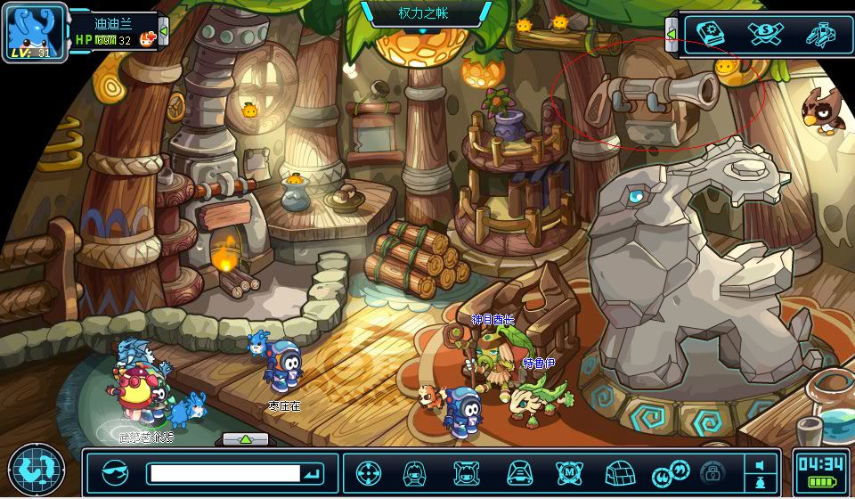 先点下桥上的猫头鹰,它飞到左下角,再点下可获得米共饲料