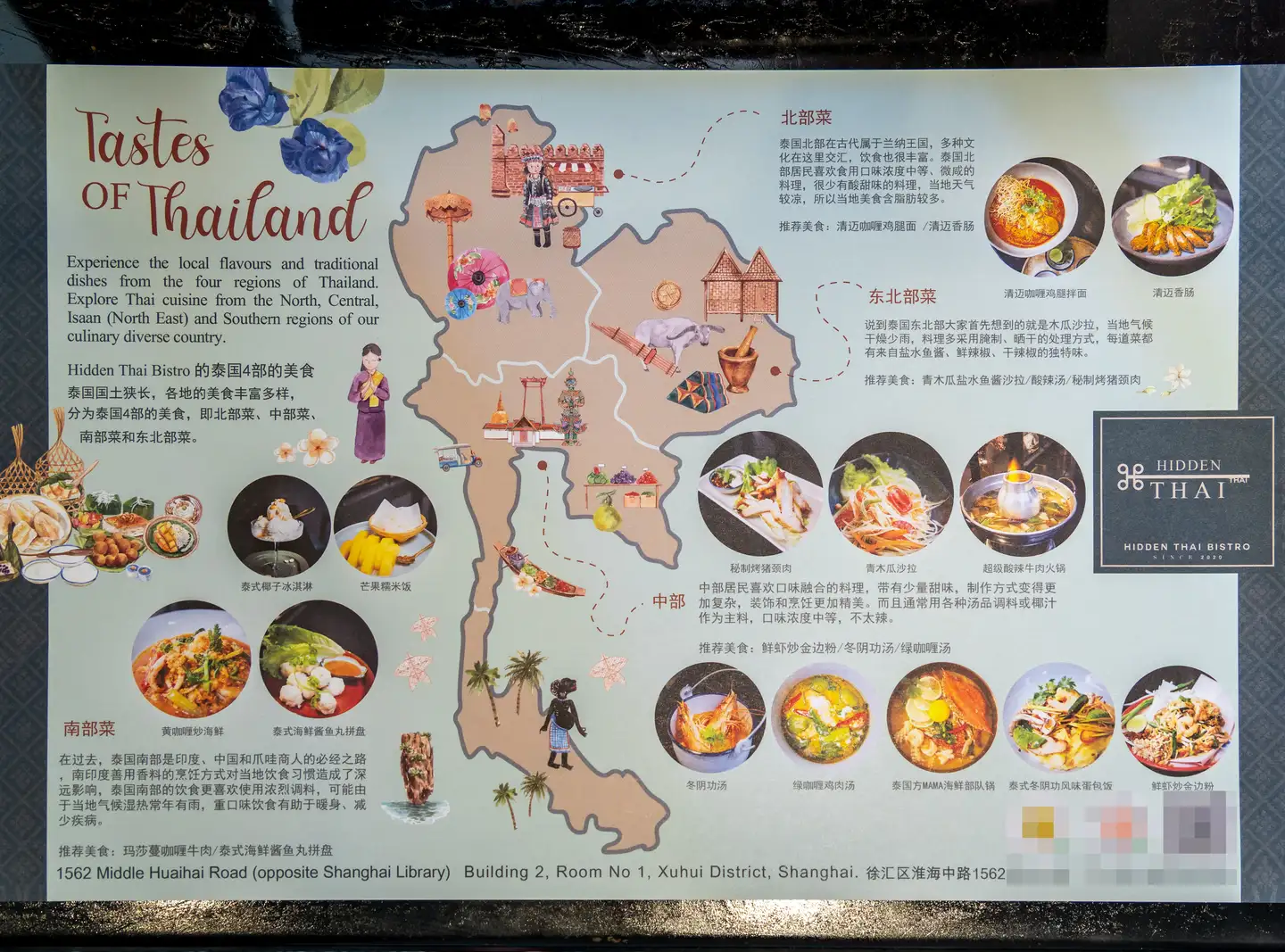 泰国菜一般可以分成4或5个菜系,之前去一家泰国餐厅,桌子上的宣传材料就很好地总结了泰国4大菜系的区别——