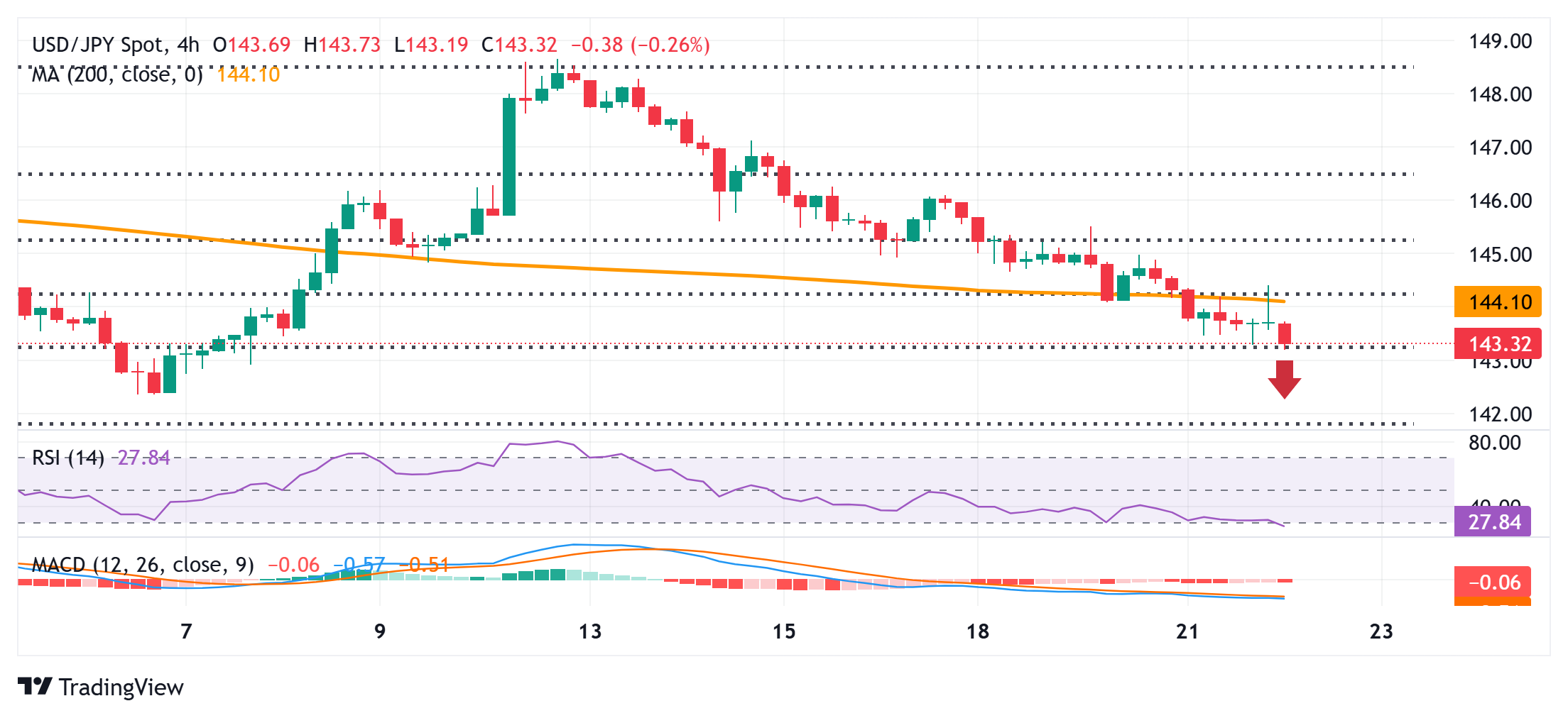 從技術角度來看,美元/日圓貨幣對週四的盤中上漲在144.40區域遇阻。該區域接近一個匯聚支撐點——包括4月-5月反彈的50%回撤水平和4小時圖上的200期簡單移動平均線(SMA)——應作為一個關鍵的轉折點。若持續強勢突破,可能引發短期回補,但在145.00心理關口附近可能會吸引新的賣盤。這應在145.35-145.40區域附近限制現貨價格,或38.2%斐波那契回撤水平,若果斷突破,可能會使短期偏向看漲交易者。 與此同時,日線圖上的振盪指標剛剛開始獲得負動能,表明美元/日圓貨幣對的最小阻力路徑仍然向下。然而,4小時圖上的相對強弱指數(RSI)已接近突破超賣區域,因此在為下一輪下跌佈局之前,等待一些短期盤整是明智的。儘管如此,若在143.20區域以下被認可,或61.8%斐波那契回撤水平,可能會促使一些技術性賣盤,並將現貨價格拖至143.00整數關口以下,然後是142.40-142.35區域的下一個相關支撐位,以及42.00關口。