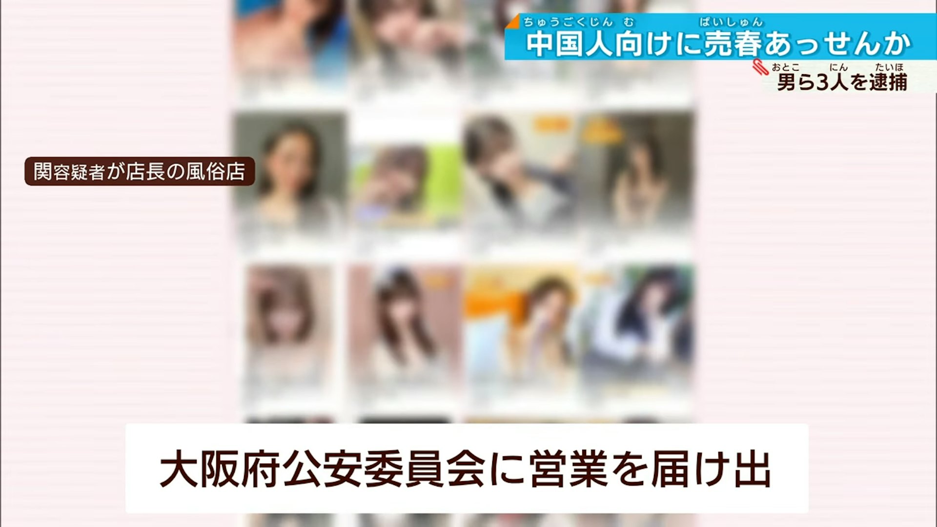 日本大阪府警方逮捕了一家派遣型風俗點的中國籍店長。(YouTube@tvosakanews)