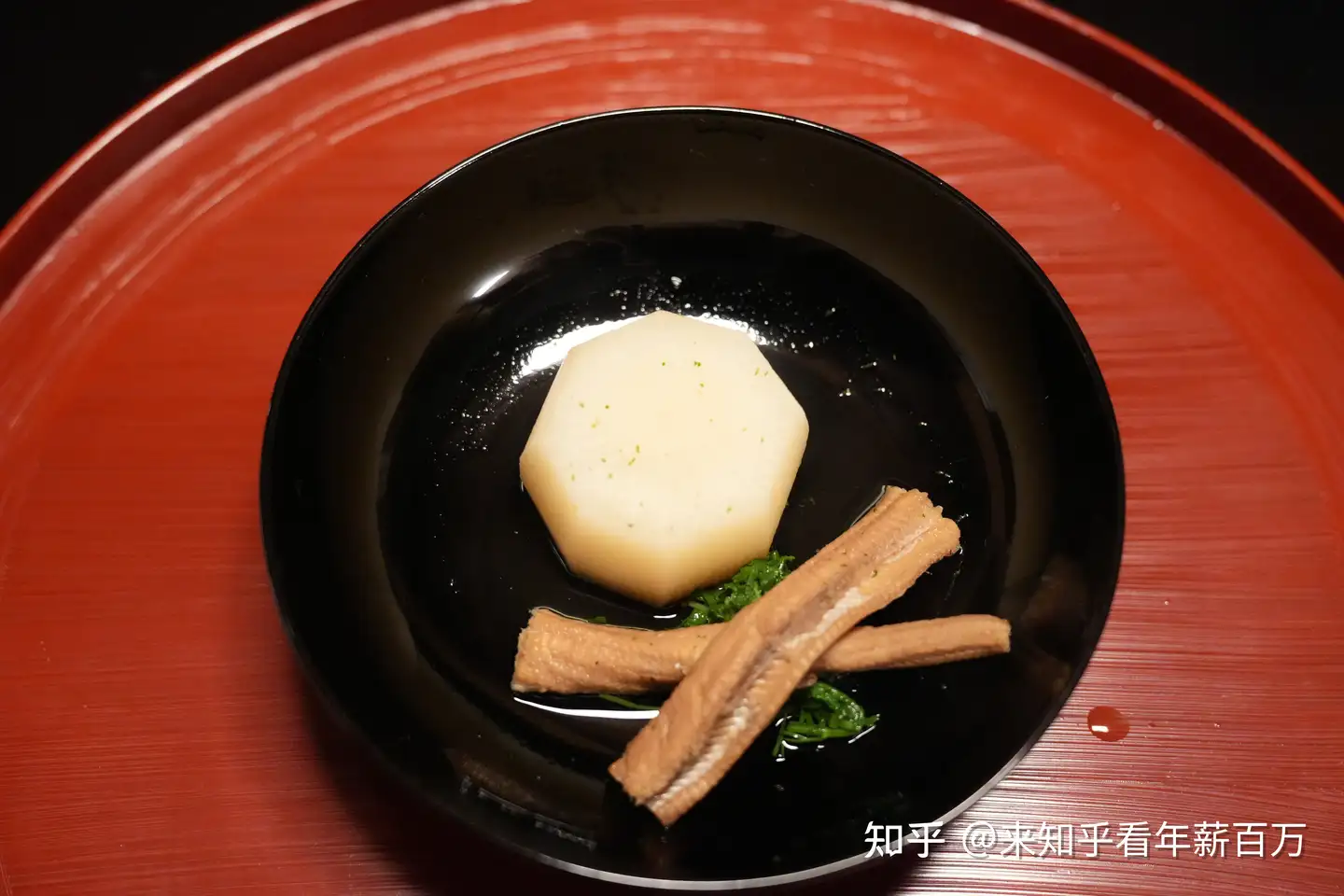 ,据说400年前江户时代瓢亭就已经煮这个溏心蛋了,蛋是有日式味增高汤调味的。不过说实话名大于实,怎么吃也就是一个鸡蛋,应该以前在没有科学时候靠经验煮出完美溏心蛋也算是可以吹捧的一门技术了吧,就像中餐炒糖色在工业化制作焦糖之前炒糖色也算是中餐的一个绝技吧。