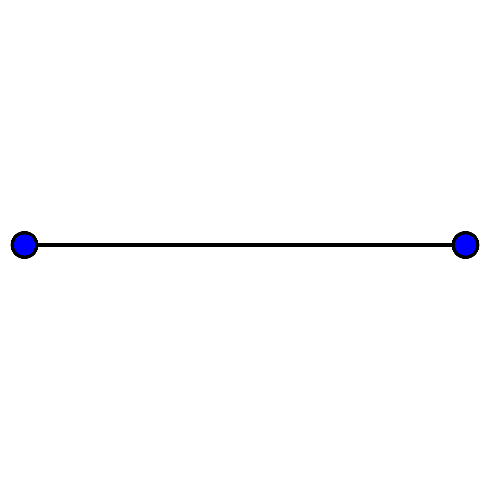 一維,有了大小的比較 一條直線就是一個一維空間,有一個自由度,一根線段只能向一個方向(左右)運動 直線延伸到無窮,因此一維有了無窮的概念 一維物體有了大小(長短)之分,也就是說一維物體不完全是全等了,但還是相似的,不是每個多胞形都有一根相同長度的線段,但是一個單位正多胞形與半正多多胞形都擁有一個單位長度的線段(除了零維負一維正多胞形) 和零維負一維一樣,一根線段必定是一個「正」的多胞形 下圖表示一根線段(點擊大圖)